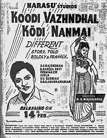 Koodi Vazhnthal Kodi Nanmai (transl.Unity is propitious) is a 1959 Indian Tamil-language film produced by V. L. Narasu and directed by D. S. Rajagopal. The film stars S. S. Rajendran and B. Saroja Devi.[3]