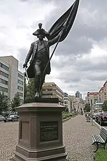He reappeared on the field at the outbreak of the Third Silesian War (1756), and during the first campaign conducted the war on the Silesian side of Bohemia; and in 1757, following the same route as in 1744, again joined Frederick at Prague. On 6 May followed the Battle of Prague; leading on a regiment of the left wing to the attack with its colours in his hand, he shouted "Let all brave Prussians follow me!" after which he was struck and killed by a cannonball.[2] Thomas Carlyle gives his cry as, "Heran, meine Kinder" ("This way, boys!").[3]
