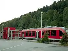 Lüdenscheid-Brügge station is on the Hagen–Dieringhausen railway from Hagen Hauptbahnhof to Dieringhausen station in the German state of North Rhine-Westphalia. It is classified by Deutsche Bahn as a category 7 station.[1] Because of the branch line to Lüdenscheid, it is classified as a separation station. The station is located on the edge of the Lüdenscheid hamlet of Brügge. There is an island platform with tracks which connects with the bus stop at ground level. The station is known nationally for its elevated disused but preserved signalbox. The station was called Brügge (Westfalen) until 10 December 2017.