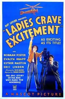 Ladies Crave Excitement is a 1935 American actioncomedy drama film released by Mascot Pictures, directed by Nick Grinde and starring Norman Foster, Evalyn Knapp and Esther Ralston.[1]