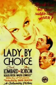 Lady by Choice is a 1934 American romantic drama film released by Columbia Pictures starring Carole Lombard as a fan dancer and May Robson as a homeless drunk asked to pose as the dancer's mother for a publicity stunt, with unexpected consequences. Promoted as a follow-up to Frank Capra's 1933 hit Lady for a Day (1933), it resembles the earlier film only in the casting of Robson.[1]