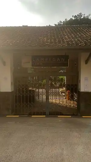 Lampegan Station (LP) is a class III railway station located in Cimenteng, Campaka, Cianjur Regency. The station, which is located at an altitude of +439 m, is included in the Operational Area II Bandung and is a railway station located in the westernmost part of Cianjur Regency.