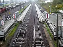 - Gleisanlagen sowie einige Signale und zulässige Geschwindigkeiten im Bahnhof auf der "Railway tracks as well as some signals and permissible speeds". OpenRailwayMap. Retrieved 22 July 2017.