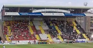 The club have played at Sincil Bank since 1895. Previously, Lincoln City had played at the nearby John O'Gaunts ground since the club's 1884 inception. Sincil Bank has an overall capacity of 10,669[19] and is colloquially known to fans as "The Bank". It is overlooked by Lincoln Cathedral.[20] Former Lincoln City chairman John Reames re-purchased the ground from the local council in 2000 at a cost of £175,000. The club had sold it in 1982 for £225,000 to fend off the threat of eviction, arranging a 125-year lease.
