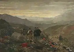 By 1870, he moved to Rome, where he opened a studio on Via Margutta #33.[5] In 1873 at the Esposizione Internazionale of Vienna, he exhibited a Riposo di cacciatori (Hunters at Rest).[6] In 1877 at the National Exposition of Naples, he exhibited: Agostino Nifo at the Court of Charles V. he also painted The Death of Pilade Bronzetti at Castel Morrone, in memory of an officer who died fighting at the Battle of Volturno;[7][8][9] and Taddeo da Sessa at the Council of Lyon defends the Emperor Frederick II.[10][11]