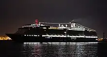 ![]() Zuiderdam departing from Fremantle on a 129-night Grand World Voyage cruise in February 2023 | |