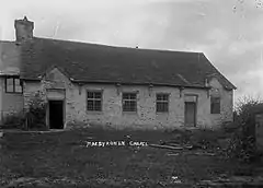 In 1689 the Act of Toleration granted Nonconformists freedom to worship in their own buildings without certain legal strictures that had formerly applied.[5] Maesyronnen Chapel was one of the earliest buildings in Wales to be created for this purpose.[6] It was developed from an existing longhouse (a farmhouse with an attached cattle-shed), the cattle-shed being converted into a chapel and the farmhouse used by the caretaker.[7] The conversion took place in the 1690s, either in 1691[8] or in 1696–97.[9] It was registered as a chapel in 1697 and was used by a congregation which had been meeting in secret in a barn nearby since the 1640s.[10] The chapel was built on land given by Charles Lloyd, squire of Maesllwch.[11] The original farmhouse would have been a substantial building dating from the Elizabethan or Jacobean era.[12] At some time it was replaced by a much smaller house, a chapel-house, for the minister[13] although teh first and also most recent occupants were caretakers.[12] The original roof was replaced in the 18th century and the floor, formerly beaten earth, was flagged.[8]