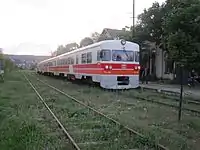 A contract for the purchase of 6 new passenger train sets, manufactured by China's CRRC Corporation at the Zhuzhou Electric Locomotive Works, was signed in 2014. The first train-set arrived in August 2015. Each train consists of 3 rail cars, and is designed to carry 200 passengers. They will be used on routes from Skopje to Bitola, Gevgelija, Kičevo, Kumanovo, and Veles.[1] This is the first time North Macedonia has bought new passenger trains since its independence,[1] and the first time a Chinese EMU or DMU manufacturer has entered the European market.[2]