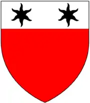 - ↑ Pole, Sir William (d.1635), Collections Towards a Description of the County of Devon, Sir John-William de la Pole (ed.), London, 1791, p.460, with tincture of lion unspecified thus presumed sable, an unusual tincture for a field ermine, thus shown here gules, as in arms of de Cornwall, Earl of Cornwall