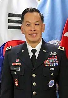 Richard Mark Toy is a retired United States Army major general who served as the Chief of Staff of the United Nations Command from August 10, 2020, to June 2022. He previously served as the Commanding General of the Mississippi Valley Division from August 16, 2019, to June 2020.[1][2][3][4][5]