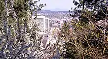 From the late 1920s into the mid-1940s, efforts were made to preserve the remaining mansions. Owners of homes in the west of Marycliff gave their mansions to the Catholic Church, which absorbed the structures into the all-girls Marycliff High School campus.[2] After the closure of the school in 1979, the campus was renovated and restored during a conversion into an office park. The two remaining mansions as well as the gatehouse are as of 2022 used for that purpose.[4] On the east side of Marycliff, the Corbin property was donated to the city on condition that it be maintained for public use.[2] While the adjacent Moore-Turner home was demolished in 1940, its gardens were left intact, and eventually restored in 2005.[5] Those two properties became Pioneer Park in 1945, named in honor of the pioneering founders of the city who previously lived in the area.[2] The park was renamed Edwidge Woldson Park in 2010.[5] The Park stretches from just west of Howard Street east one block to Stevens Street, though its southern half extends eastward in a wedge shape between the cliff above and Ben Garnett Way below. Cliff Drive, which runs along the crest of the cliff, marks its southern boundary, beyond which is the Cliff Park section of the district.[6]