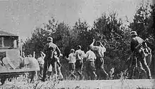 During the invasion of Poland, the Wehrmacht committed a number of war crimes, including several prisoner-of-war massacres, of which Ciepielów became the most widely known. Reasons suggested by some historians for the massacres include contempt for Poles and Polish soldiers, encouraged by Nazi propaganda, which described them as German-hating Untermenschen, and lack of preparation, resources, and will to secure surrendered Polish soldiers. However, many other western historians point to plans formulated by the German General Staff, prior to the invasion, which authorized the SS to carry out security tasks on behalf of the army that included the imprisonment or execution of Polish citizens, whether Jewish or gentile.[7] On 19 September, shortly after the onset of hostilities, Franz Halder, Chief of the German General Staff, noted in his diary that he had received information from Reinhard Heydrich. The SS were beginning their campaign to "clean house" in Poland of Jews, intelligentsia, Catholic clergy, and the aristocracy. Halder was aware of the murders but did not object.[8] He dismissed the crimes as aberrations and refused one general's request to pursue the SS and police perpetrators.[9] Further, German officers often treated Polish soldiers of disorganized units captured behind German lines as partisans, not as regular soldiers, and felt justified in ordering their summary execution. This led to several dozen executions of groups of Polish soldiers, in addition to a hard-to-estimate number of murders of individual soldiers.[1]