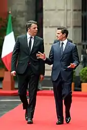 Renzi's victory was welcomed by Prime Minister Letta,[70][71] who had been the vice-secretary of the party under Bersani's leadership.[72] Throughout January and February 2014, there were multiple reports of persistent leadership tensions between Renzi and Prime Minister Letta.[73][74][75] Many said that Renzi was pressuring Letta to resign in his favour, arguing that he should be given the right to become Prime Minister, as he was the PD's leader.[76][77] On 12 February, Letta acknowledged these rumours for the first time, publicly demanded that Renzi make his position clear.[78] Renzi subsequently called a meeting of the PD leadership for the following evening.[79] Just before the meeting took place, Renzi publicly called on Letta to resign and allow him to form a new government.[80] Letta initially resisted the demand;[81][82] following a vote in favour of Renzi's proposal during the meeting, which Letta did not attend,[83] he announced that he would tender his resignation as Prime Minister on 14 February.[84]
