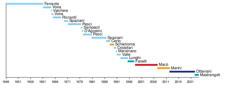 | 1 | Domenico Ferrante | 8 April 1946 | January 1961 | Christian Democracy |