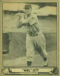 Melvin Thomas Ott (March 2, 1909 – November 21, 1958), nicknamed "Master Melvin", was an American professional baseball right fielder, who played in Major League Baseball (MLB) for the New York Giants, from 1926 through 1947.