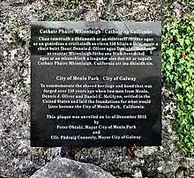 3. "Menlo Park history". menlopark.org. City of Menlo Park. Retrieved 6 January 2021. The men named their new home after their old, in Menlough on Lough Corib, County Galway, Ireland