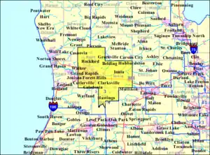 Michigan's 3rd congressional district is a U.S. congressional district in West Michigan. From 2003 to 2013, it consisted of the counties of Barry and Ionia, as well as all except the northwestern portion of Kent, including the city of Grand Rapids. In 2012 redistricting, the district was extended to Battle Creek. In 2022, the district was condensed to the greater Grand Rapids and Muskegon areas, including portions of Kent, Muskegon, and Ottawa counties. Redistricting removed Barry, Calhoun, and Ionia counties.[5]