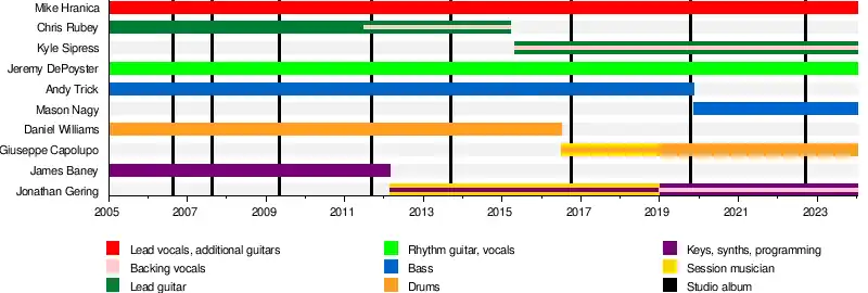 - ↑ "The Devil Wears Prada part ways with guitarist/founding member, Chris Rubey". Alternative Press. March 17, 2015. Retrieved March 19, 2015.