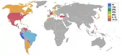 This edition saw the debuts of Martinique, Morocco, and Paraguay, and the returns of Austria, Ceylon, Hawaii, and South Korea. Austria and Hawaii last competed in 1953, while Ceylon and South Korea last competed in 1955. British Guiana, Chile, the Dominican Republic, Holland, and the United States withdrew.[2] Corine Rottschäfer of Holland was supposed to compete at Miss Universe. However, Rottschäfer just won another international contest that bars her from competing. Rottschäfer competed at the following year.[3] British Guiana, Chile, and the Dominican Republic withdrew after their respective organizations failed to hold a national competition or appoint a delegate.