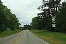 The two highways form a concurrency where MS 429 physically travels west along westbound MS 14. Heading through a mix of houses, open fields, and woods, MS 14 ends its concurrency at the settlement of Newport and resumes a northerly heading. The highway travels through woods, then some open fields line the road as it crosses small streams. Now starting to approach Sallis, MS 429 passes an elementary school and crosses Long Creek. It enters the town of Sallis, passes an abaondoned Illinois Central Railroad crossing, and reaches the southern terminus of MS 431 at Front Street. Around the Front Street intersection, the state highway fronts the town post office and a general store. Heading up a small hill, MS 429 passes a Baptist church, many houses, and a cemetery before exiting the corporate limits of Sallis. About 14 mile (0.40 km) from the town line, MS 429 ends at an intersection with MS 12 where the road continues north as County Road 4222.[2]
