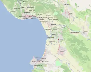 The first European to discover Monterey Bay was Juan Rodríguez Cabrillo on November 16, 1542, while sailing northward along the coast on a Spanish naval expedition. He named the bay Bahía de los Pinos,[1] probably because of the forest of pine trees first encountered while rounding the peninsula at the southern end of the bay.[2] Cabrillo's name for the bay was lost, but the westernmost point of the peninsula is still known as Point Pinos.