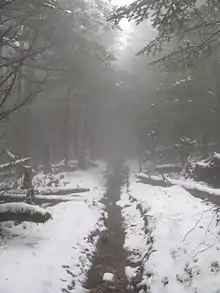 Mt. Guyot remained isolated until the Civilian Conservation Corps constructed a segment of the Appalachian Trail across the mountain's western slope in 1935.[16] Although the trail opened up the heart of the Eastern Smokies to backpackers, access remained relatively difficult. According to author Laura Thornborough, who climbed Guyot in the late 1930s:
