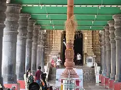 The prime festival or Brahmmotsavam is a 10-day festival celebrated during the Tamil month of Margazhi (December–January). Garuda Sevai is celebrated during the Tamil month of Panguni (March–April). During both these festivals, the festive images of Kal Garuda are taken out around the streets of the temple. Vasanthothsavam or spring festival is celebrated during the Tamil month of Vaikasi (May–June). The Thirukalyana Utsavam or the wedding festival is celebrated in the 100-pillared hall during the Tamil month of Aavani (September–October).[3][4] As per hagiographical records, it is believed that Vaikhasana form of worship was originally practiced and the temple started following Panchrartra form of worship after the advent of saint Ramanuja.[5]