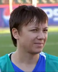 Nadezhda Timofeevna Bosikova (Russian: Надежда Тимофеевна Босикова; born 17 June 1972) is a Russian football coach and former player. As a forward, she played for Energiya Voronezh since the Russian Championship's inaugural edition in 1992[1] and was affectionately nicknamed "Barefoot" (Russian: Босик) at the club.[2] She was the championship's top scorer in 1994, 1995, 1996, 1997, 1998 and 2000 with 31, 37, 39, 21, 19 and 30 goals respectively.[3] Bosikova's playing career was interrupted by the birth of her son Matthew (Russian: Матвей). She remained loyal to Energiya in 2004 when a player exodus left her as the only name on the club's roster.[4]
