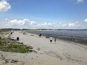 Nahant Beach Reservation is a protected coastal reservation covering 67 acres (27 ha) of beach and recreational areas in the town of Nahant, Massachusetts. Nahant Road, formerly known as Nahant Beach Boulevard when it was added to the National Register of Historic Places in 2003, offers access to 7,000-foot-long (2,100 m) Long Beach on the Atlantic Ocean side to the east. The reservation includes a boat ramp with access to Lynn Harbor and shares athletic fields with Lynn Shore Reservation in the area around Nahant Rotary, a traffic circle at the reservation's northern end.[3][4] The reservation is part of the Metropolitan Park System of Greater Boston.