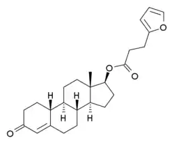Nandrolone furylpropionate (NFP) (JANTooltip Japanese Accepted Name) (brand name Demelon), also known as 19-nortestosterone 17β-(2-furanyl)propanoate, is a synthetic androgen and anabolic steroid and a nandrolone ester.[1][2][3] It was developed and marketed by Mochida Pharmaceutical in Japan in the 1960s.[4][5]