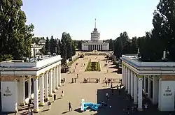 Expocenter of Ukraine (VDNG) (Ukrainian: Експоцентр України (ВДНГ)), originally known as Exhibition of Achievements of the National Economy of Ukrainian SSR (Ukrainian: Виставка досягнень народного господарства УРСР) or VDNG of Ukrainian SSR (Ukrainian: ВДНГ УРСР), is a permanent multi-purpose exhibition complex in the Teremky neighborhood of Kyiv, Ukraine. Located on the outskirts of the Holosiiv Forest, a large portion of which has been converted into a park zone, the expo specializes in demonstrating Ukrainian achievements in the sphere of industry, science etc.