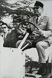 The construction of Monas proceeded in three stages. The first period, from 1961/1962–1964/1965 began with the official start of construction on 17 August 1961 with Sukarno ceremonially driving in the first concrete pile.