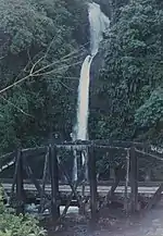 The scenic spot to overlook La Paz waterfall, on the La Paz Grande river, is served by a bridge that has been destroyed two times, in 2003 the 65 years old original wood bridge fell due to heavy machinery transportation, a Bailey bridge was installed, which due to a torrential storm, was destroyed by the river in 2013. A new Bailey bridge was again installed, a meter higher than before, opened in September 2013.[6][7]