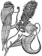 c.^ Plant material identified as N. spinosa by Tamin and Hotta consists of two main specimens: Tamin & Asmiati 425 and Tamin & Asmiati 426. Both are deposited at the Herbarium of Andalas University in Padang, West Sumatra and appear to represent N. sumatrana. However, Figure 8 in Tamin and Hotta's treatment illustrates a lower pitcher (Hotta 31158, held at the Herbarium of Kyoto University) that probably belongs to N. gymnamphora.[7]