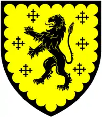 Arms of Adams of Tunstall: Or, a lion rampant between six crosses crosslet within a bordure engrailed sable[1]
