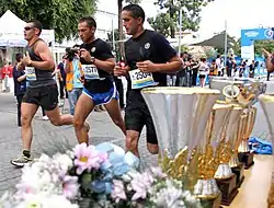 Next marathon was organized on December 9, 2012, when took place a marathon, a half marathon, a 10 km run, a 5 km run and a 1 km UNICEF Charity run. More than seven thousand runners participated in the Quantum Nicosia Marathon.[5] Marathon took place on streets of Nicosia. Start and finish of race was at the Famagusta Gate, chief gate of old Nicosia walls.[5] The Quantum Nicosia Marathon course is of a low degree of difficulty. The Marathon flame arrived for first time on Cyprus on December 6, 2012, just 3 days before start of the Quantum Nicosia Marathon.[6][7] Nasos Ktorides had honour to bring the Marathon Flame first to the Antarctic Ice Marathon and then to Cyprus.[7]