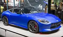 The Nissan Z,[4] known in Japan as the Nissan Fairlady Z (Japanese: 日産・フェアレディZ, Hepburn: Nissan Fearedi Zetto), is the seventh generation of the Z-car line of sports cars manufactured by Nissan. The model succeeded the 370Z, though is built on a modified and revised version of the previous generation's platform.[5] The model also drops the numerical nomenclature of the previous generations.