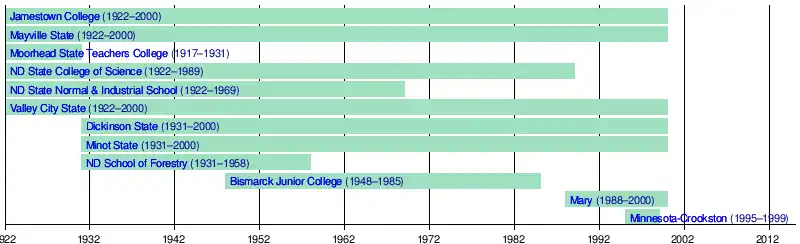 The North Dakota College Athletic Conference (NDCAC) was a collegiate athletic conference that ceased operations following the 1999–2000 academic school year when it merged with the South Dakota Intercollegiate Conference to form the Dakota Athletic Conference. The conference originally started as the Interstate Athletic Conference in 1922, with five North Dakota schools and Moorhead State Teachers College from Minnesota. Moorhead State left in 1931 to help found the Northern State Teachers Conference in 1931, and the remaining members brought in more schools to regroup as the NDCAC.[1]