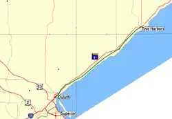The North Shore Scenic Railroad (reporting mark NSSR) is a heritage railroad that operates between Duluth and Two Harbors, Minnesota, United States, along 28 miles (45 km) of the Lakefront Line, once part of the Duluth, Missabe and Iron Range Railroad.
