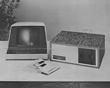 The North Star Horizon computer, pictured with a terminal and floppy disks.