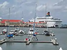 The Port of Penang consists of four terminals, one of which is located within the district. The Swettenham Pier serves not only cruise ships, but also on occasion, warships as well.[16][17][18] As of 2014, Swettenham Pier recorded 1.2 million tourist arrivals and attracted some of the world's biggest cruise liners, such as the RMS Queen Mary 2.[19]