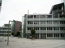 The building is located on the campus of the Hamburg University of Technology in Hamburg-Harburg. Most of the NIT students live right in the building, which houses over 65 apartments.[12] On the wall in the foyer, an artwork by the Austrian concept artist Peter Friedl deals with the theme “nobody knows science”.[13] In the building, rooms can be rented for conferences, conventions, and workshops: the NIT offers various working spaces in Hamburg-Harburg, including seminar and conference rooms, a design thinking room, and offices.