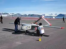 The airport was largely used to fly to Longyearbyen, although a limited number of flights were undertaken to the mainland. In addition to magnetic tapes, the aircraft were used to transport personnel and cargo, particularly during winter.[24] Services were originally operated by Ski- og Sjøfly, but were later taken over by Svalbard-Fly,[25] both of which had their Cessna 185 aircraft stationed in Ny-Ålesund.[10] On 3 June 1970, a miner with a fractured skull was transported by ship from Longyearbyen to Ny-Ålesund and sent on board a Piper PA-31 Navajo to the mainland for treatment.[26] After the telemetry station closed in 1974, the airport was taken over by Kings Bay.[27] During this period, Longyearbyen was served by a planed section of tundra in Adventdalen.[28]