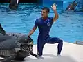 Near the aquarium is the Dolphin Show Stadium, called the Okichan Theater, where viewers can touch the animals and watch the show's performance for free.[37] There is also a dolphin contact facility called Dolphin Lagoon, which houses several species of dolphin.[38][39] The Indo-Pacific bottlenose dolphin named Okichan has been owned since the opening of the Okinawa Ocean Expo Aquarium and has been bred for 45 years as of 2020.[28]