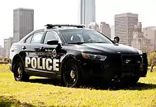 An OCPD car at the new headquarters building; the OCPD began transitioning from the Crown Victoria to the Ford Taurus as its standard patrol car starting in 2012