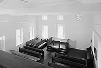 The church grew in the period of before the Civil War. But many of its male congregants enlisted in the Confederate Army once war began in 1861. Several are buried in the church graveyard. During the war, Union Army soldiers used part of the floor to reconstruct a bridge over the Little River. There is a pencilled apology on an interior wall that was left by soldier "Citizens of this community: Please excuse us for defacing your house of worship, so much. It was absolutely necessary to effect a crossing over the creek, the Rebs had destroyed the bridge. A Yankee."[2][3][4][5][6]