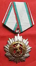 Awarded to foreign citizens for the establishment and strengthening of friendly international relations with The Republic of Bulgaria. If awarded for Military relationships the award was presented with swords. Designed by V. Starchev and K. Damyanov. | ||