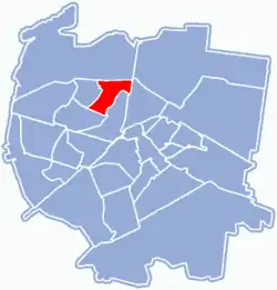 Construction of the 'Dziesięciny' estate began by "Rodzina Kolejowa" Housing Association, where the first building completed in 1977 and the end of December 1985. the housing resources of the estate consisted of 27 buildings with a total of 2,190 apartments.[1] In September 2015 an archeological find was made in that district which contained graves of 22 human skeletons with rings on the finger bones and coins from 1666, in a depth of one meter. That happened during a construction of a parking lot near the intersection of Hallera street and Antoniuk Fabryczny.[2]