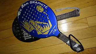 Paddle-ball is a sport that is played on a court half the size of a tennis court, using paddle racquets. The paddle is made of wood or graphite, and has holes to reduce air friction. The game is played with two players (single game) or in doubles (4 players).