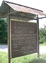 Sign welcoming visitors to Parque Nacional Jeannette Kawas